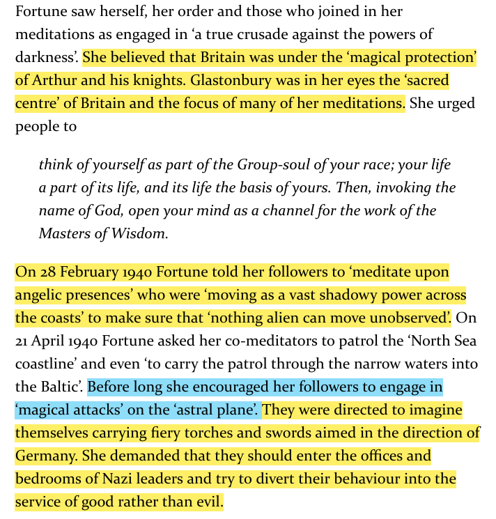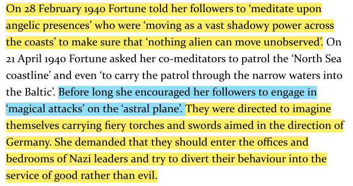 Dion Fortune had followers perform meditative patrols along coasts and into the Baltic, invoking angelic forces to watch for threats, later directing "astral attacks," visualizing fire and swords aimed at Germany while trying to sway Nazi leaders toward good. https://t.co/AqP2zqcy3n