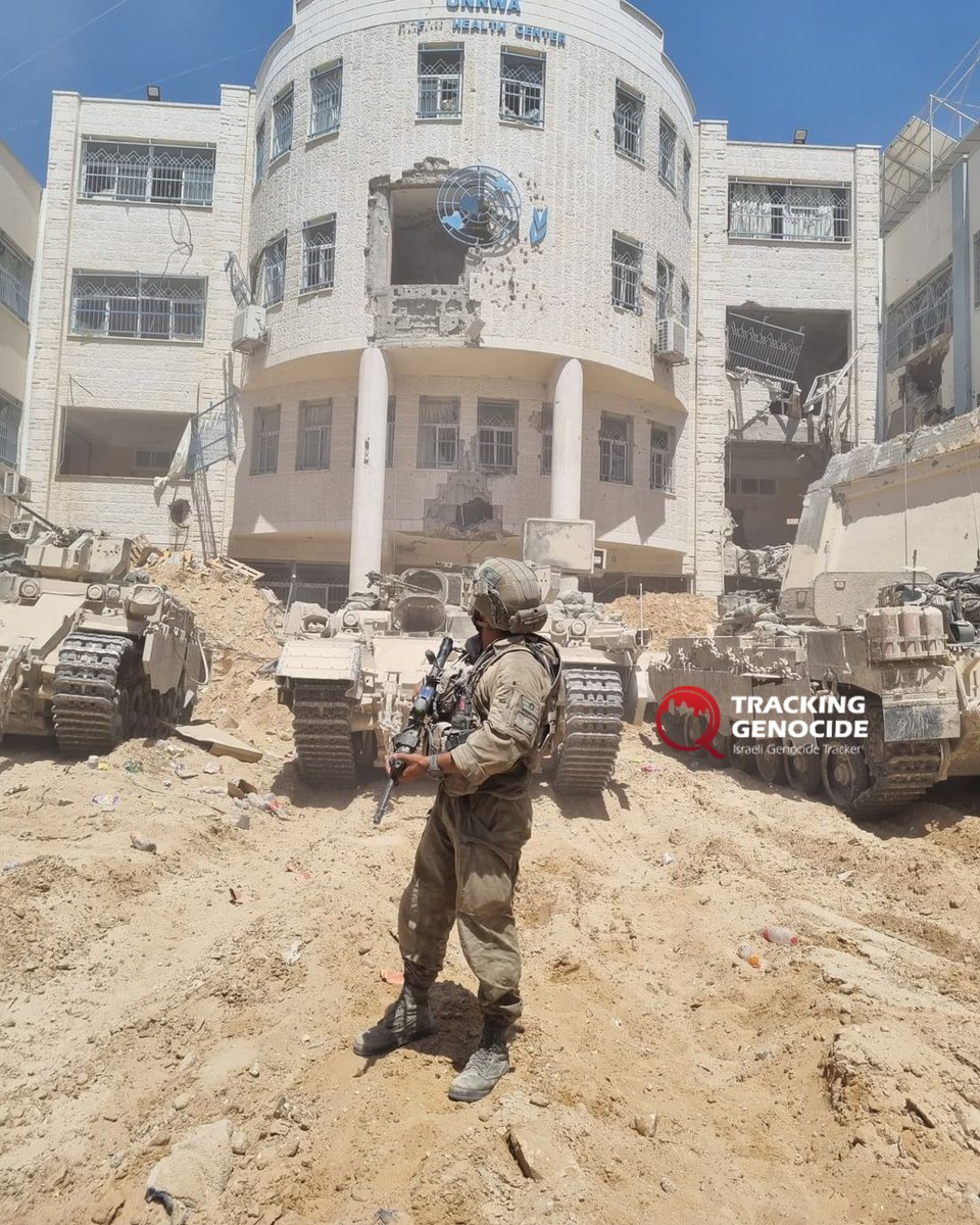 Israeli soldier Adi Daniel from the Givati Brigade's Shaked Battalion posted an image of himself in front of the UNRWA health center building in Rafah that they raided and converted into a military base. https://t.co/IIkKXh6LTg