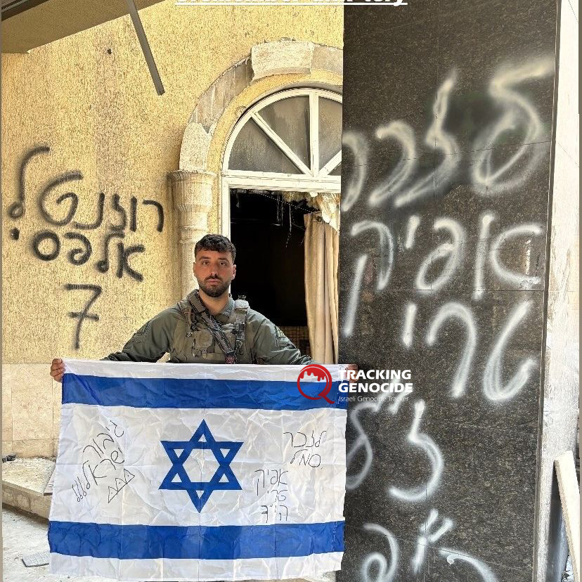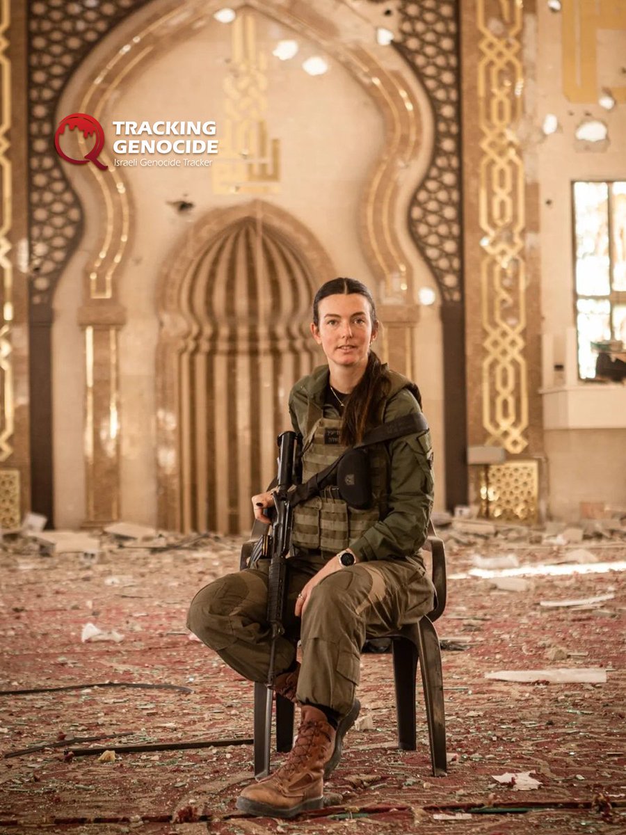 Israeli Captain and intelligence officer Noga Pashchur, of Slavic origin, accompanied the 401st Armored Brigade during the invasion of Gaza, where she posed for a photo inside a mosque that had been desecrated by the forces. https://t.co/s5PMbTl1Nw