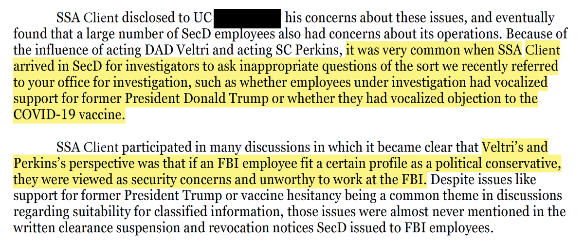 In September 2021, then-Section Chief Veltri opened the retaliatory and politicized investigation into our client Marcus Allen--bypassing the normal complaint vetting unit. He oversaw the suspension and then revocation of Allen's security clearance. Nearly three years later the FBI was forced to reinstate the clearance: https://empowr.us/fbi-whistleblowers-security-clearance-reinstated-in-full.