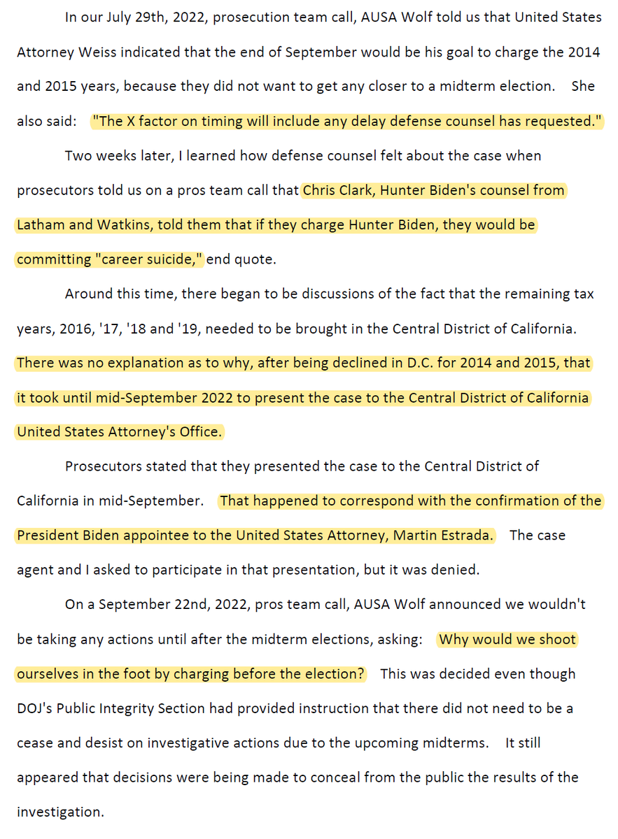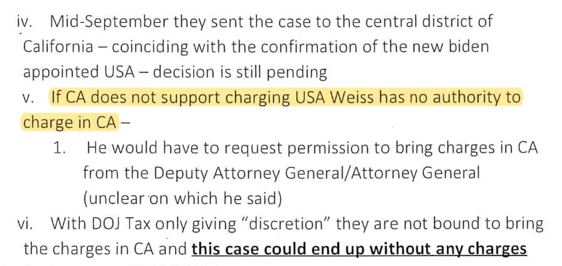 In the Central District of CA, Delaware prosecutors and DOJ Tax appeared to wait until President Biden's U.S. attorney nominee, Martin Estrada, was confirmed before presenting the case there in September 2022. And even then AUSA Wolf wanted to delay until after the election. https://t.co/tXIU5VKK8g