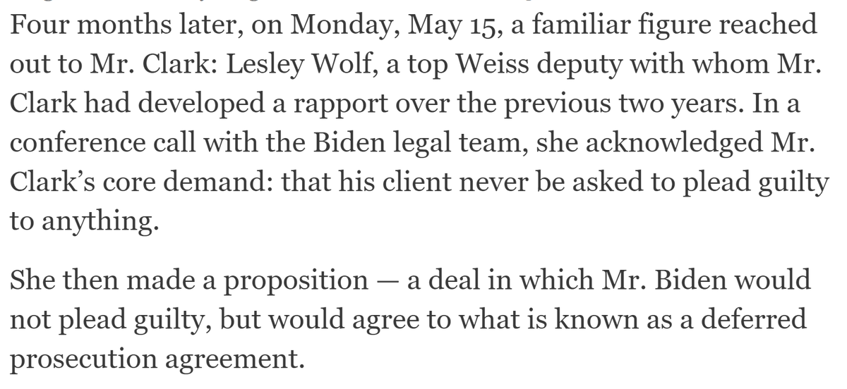 AUSA Lesley Wolf had already pulled punches in the 2018-2021 investigation, and now in 2022 she was more than sympathetic to the arguments from Hunter's legal team, who she met with regularly without investigators. Clark told her charging Hunter would be "career suicide." /9