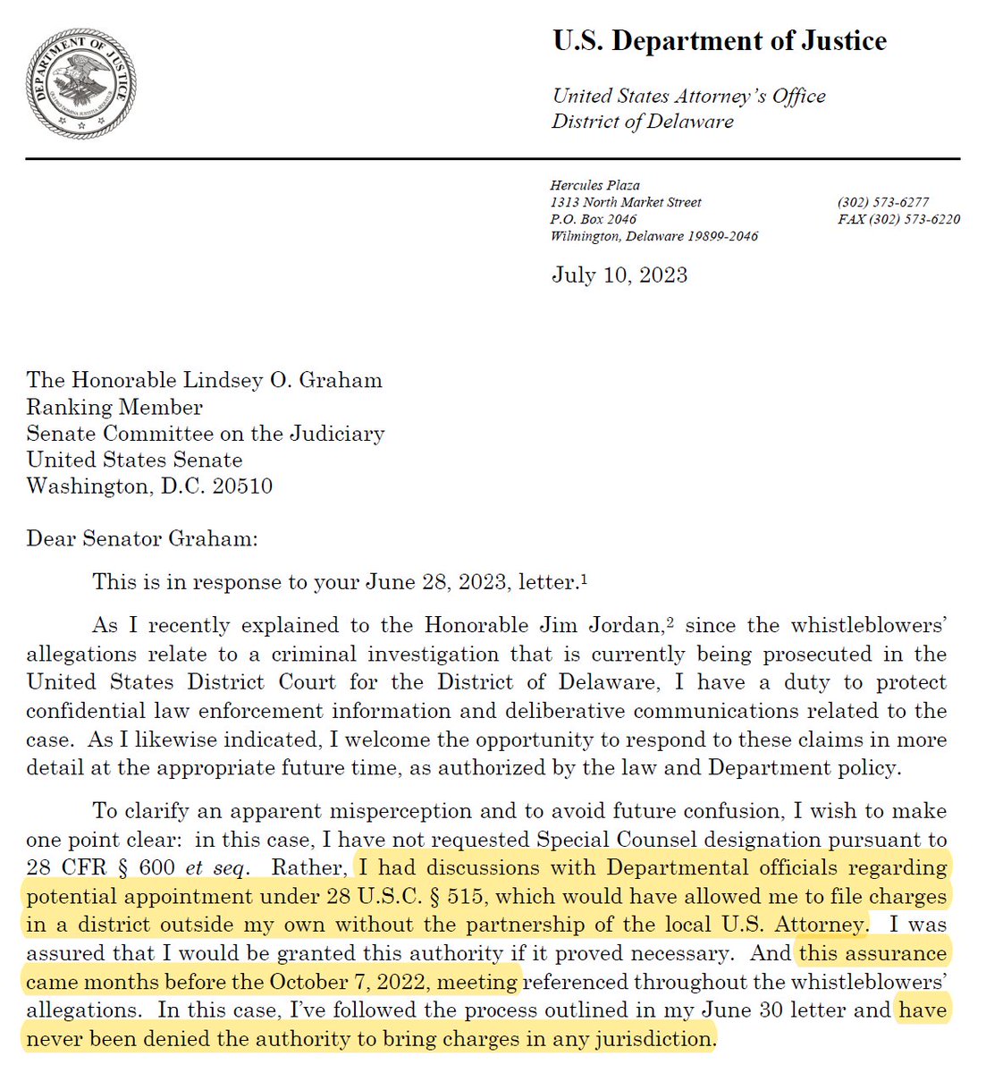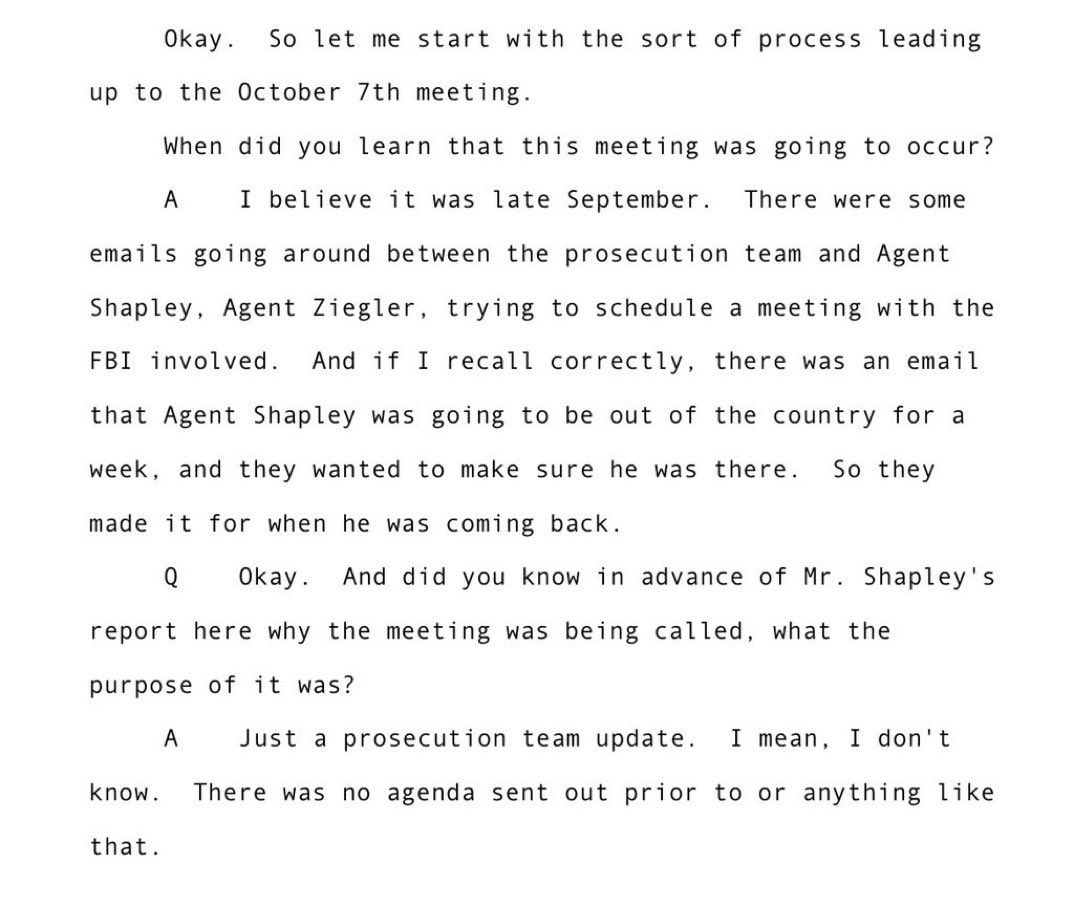 So in late September 2022 (well before the 10/6 Washington Post leak) a meeting was set between DE USAO, IRS, and FBI senior managers—i.e. excluding AUSA Wolf—for 10/7/22. The meeting was specifically scheduled around SSA Shapley’s international travel to ensure he could attend. https://t.co/U4lWtvARXn