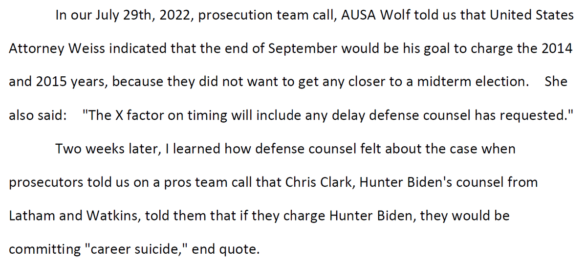 But just 3 weeks after the 10/7/22 meeting, when SSA Shapley called out the preferential treatment for Hunter Biden, Clark's 10/31/22 letter leaned heavily on politics (Pres. Trump, Sen. Grassley) while using THE THREAT OF JOE BIDEN TESTIFYING *to undermine the case*. /11