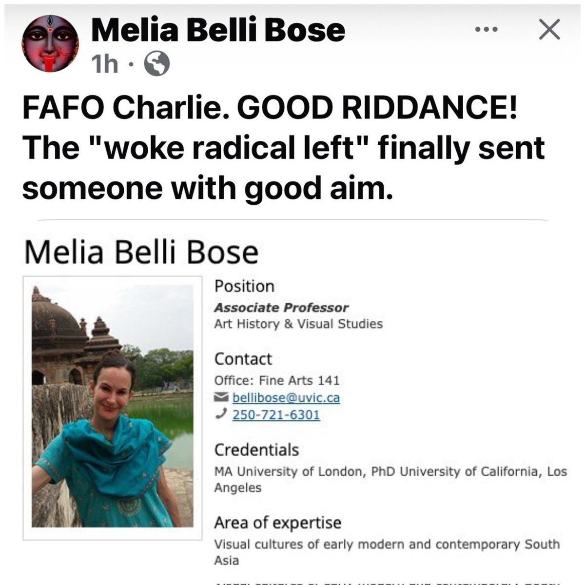 A professor from the University of Victoria in BC celebrates the assassination of Charlie Kirk Make her famous https://t.co/9KedRhPtbB