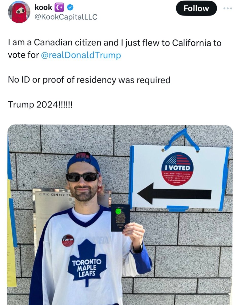 Canadian man from Toronto claims he flew to California to illegally vote for Trump He was able to do so because California requires NO VOTER ID https://t.co/HecBxmdQYK