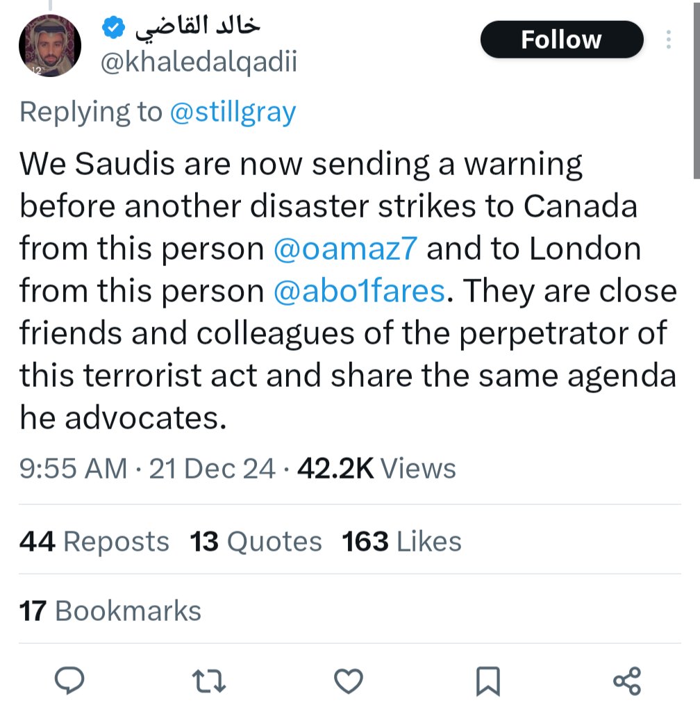 Saudis on X are warning of a possible terrorist attack coming to Canada The alleged terrorist lives in Montreal @csiscanada @rcmpgrcpolice https://t.co/hxFag4b64A