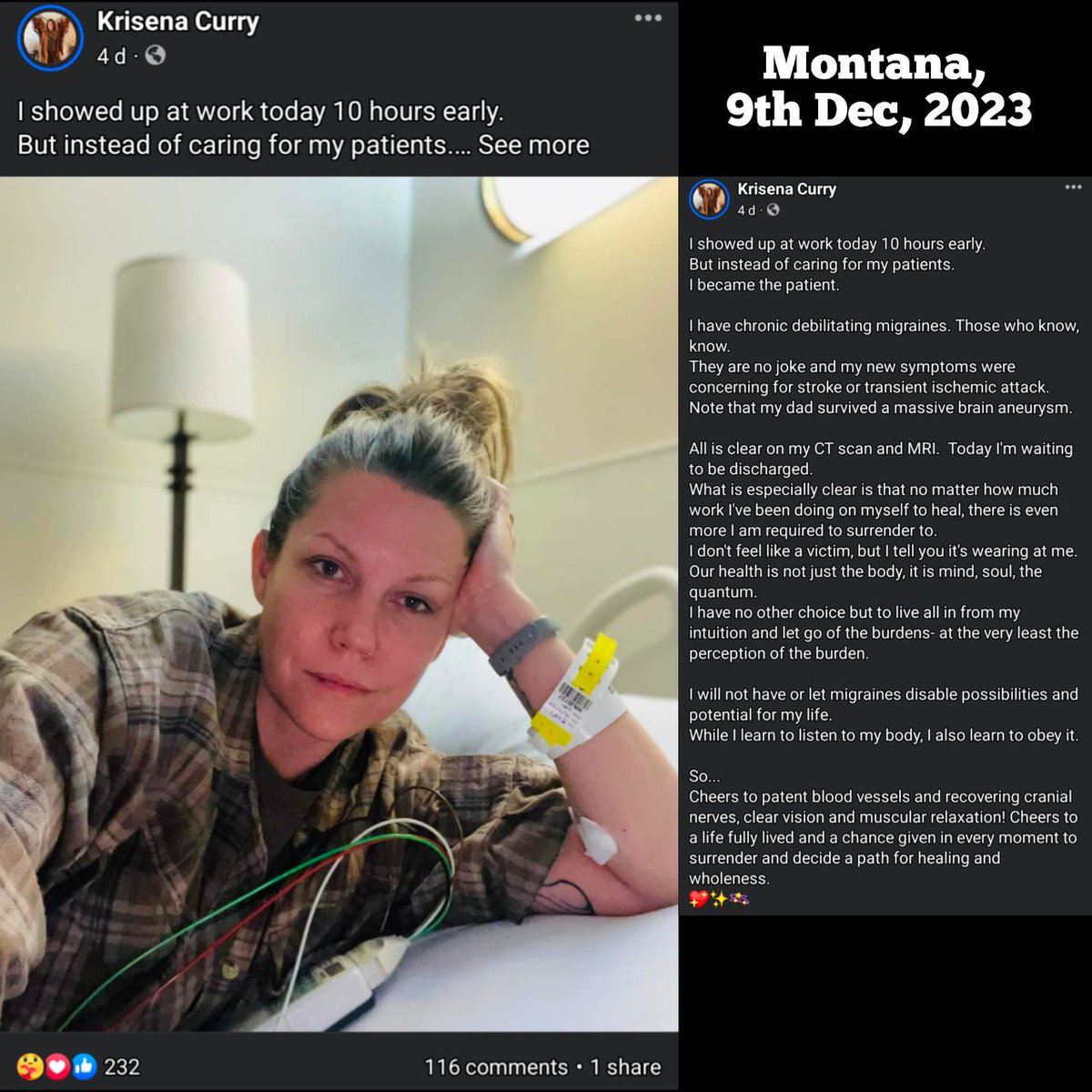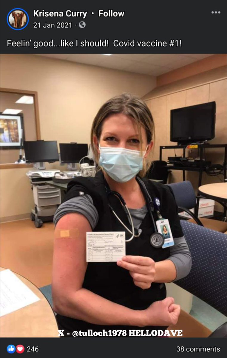 Montana, Nurse, Krisena Curry. "Feelin’ good...like I should! Covid Vaccine #1!" #Moderna "I showed up at work today 10 hours early. But instead of caring for my patients. I became the patient." https://t.co/4XDcOBP4b3