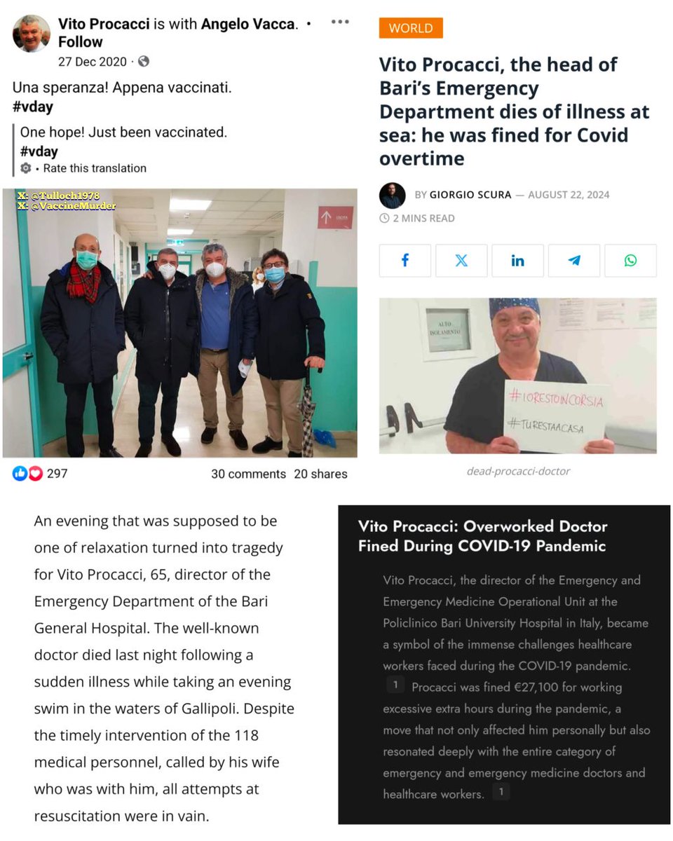"Just been vaccinated" #diedsuddenly Doctor Vito Procacci, director of the Emergency Department of the Bari General Hospital, died following a sudden illness while taking an evening swim in the waters of Gallipoli.