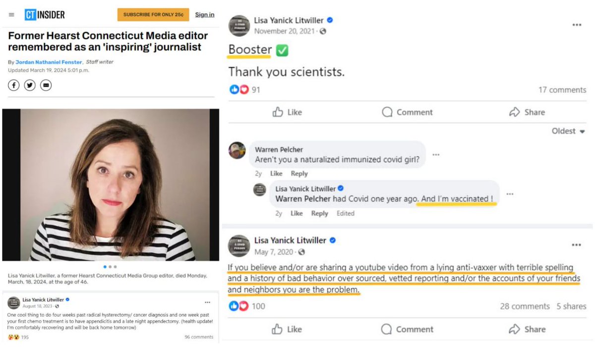 Former Hearst CT Media Editor, Lisa Yanick Litwiller, 46, died suddenly March 19, 2024. "BOOSTER ✅ Thank you scientists. 8/9/23 - "After an emergency & unexpected total hysterectomy for a giant tumor 3 weeks ago, my ultimate diagnosis is cancer." https://www.bridgemi.com/center-michigan/lisa-yanick-litwiller-bridge-editor-and-mt-pleasant-stalwart-dies-cancer