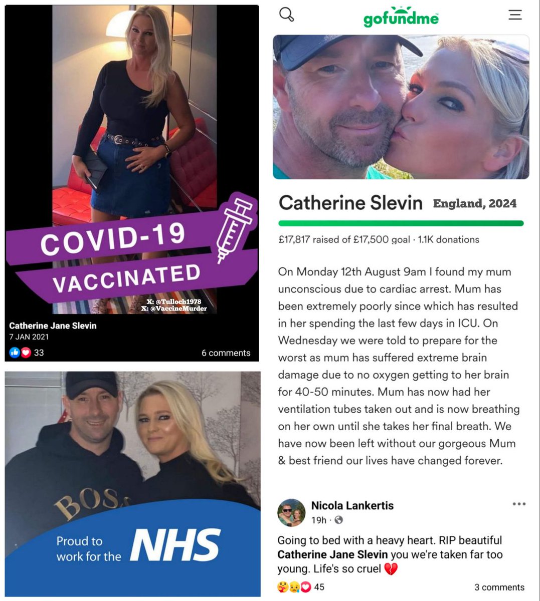 "Covid-19 Vaccinated" #diedsuddenly "I found my mum unconscious due to cardiac arrest. We were told to prepare for the worst as mum has suffered extreme brain damage." "RIP beautiful Catherine Jane Slevin you were taken far too young 💔"