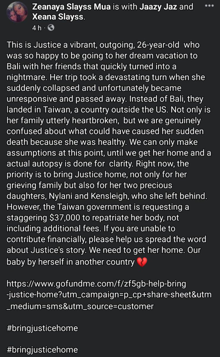 Ohio, Jaazy Jaz. #pfizer #diedsuddenly (Nov 2023) Dream holiday to Bali turned into a nightmare, 26-year-old suffered a seizure and lost all vital signs. “We are genuinely confused about what could have caused her sudden death because she was healthy.” https://www.gofundme.com/f/zf5gb-help-bring-justice-home?utm_campaign=p_cp+share-sheet&utm_medium=sms&utm_source=customer