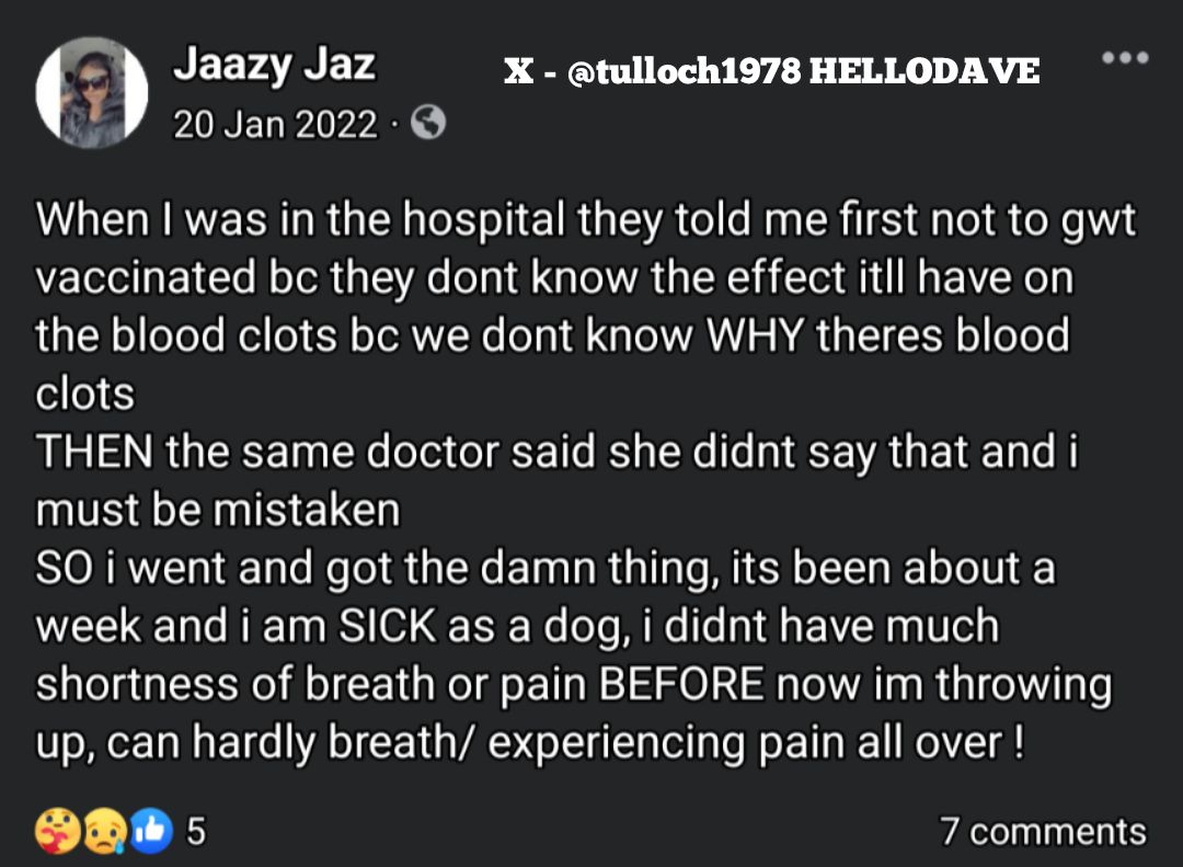 “Waiting on results of chest X-ray which is making me paranoid, 3 people i know have passed away this week. Going to see Ian yesterday in hospital. He passed away just a few hours later, at least the cancer took him relatively quick.” #VaccineGenocide #NHS https://t.co/tOj3L3YVXJ