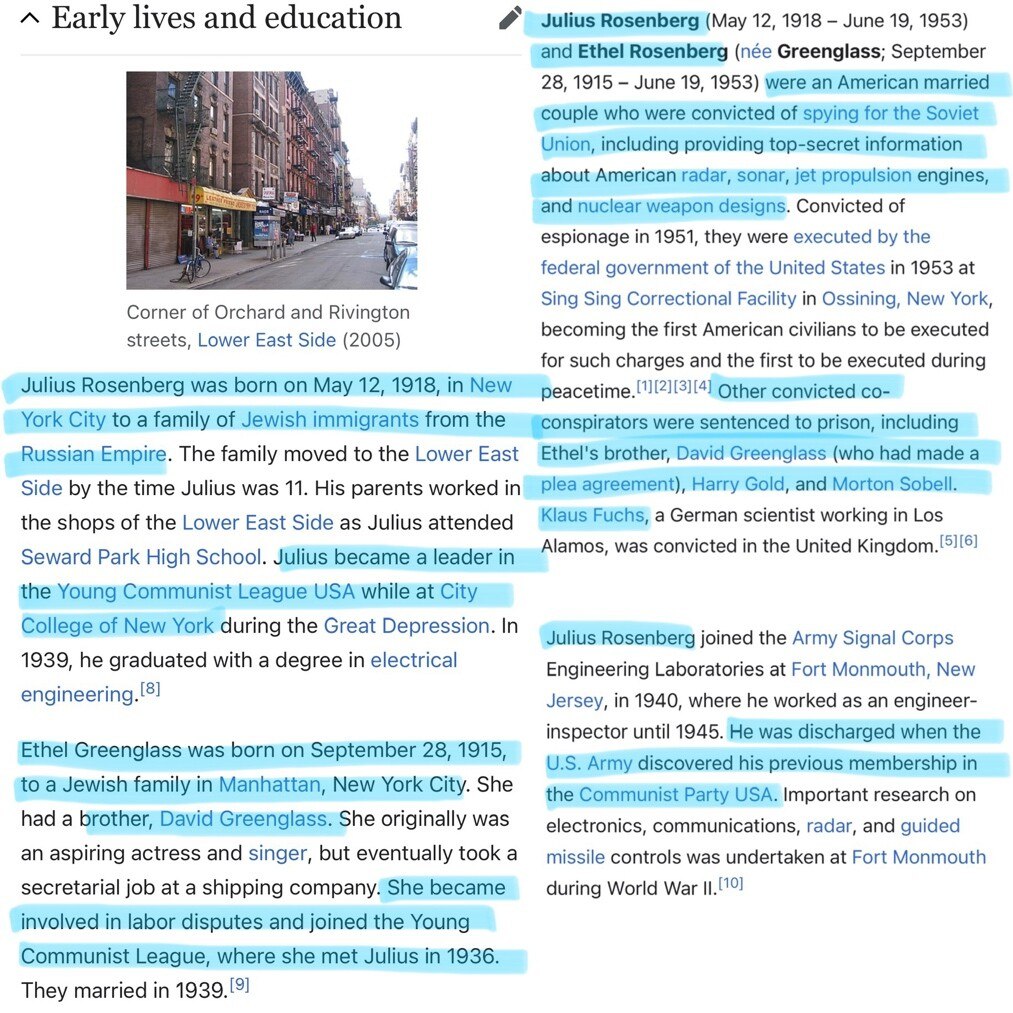 On June 19th, 1953 Ethel & Julius Rosenberg were electrocuted after being convicted of spying on US nuclear technology. They worked with other ✡️s to provide Bolsheviks top-secret 🇺🇸 information regarding radar, sonar, propulsion engines, & weapons-grade uranium manufacturing.