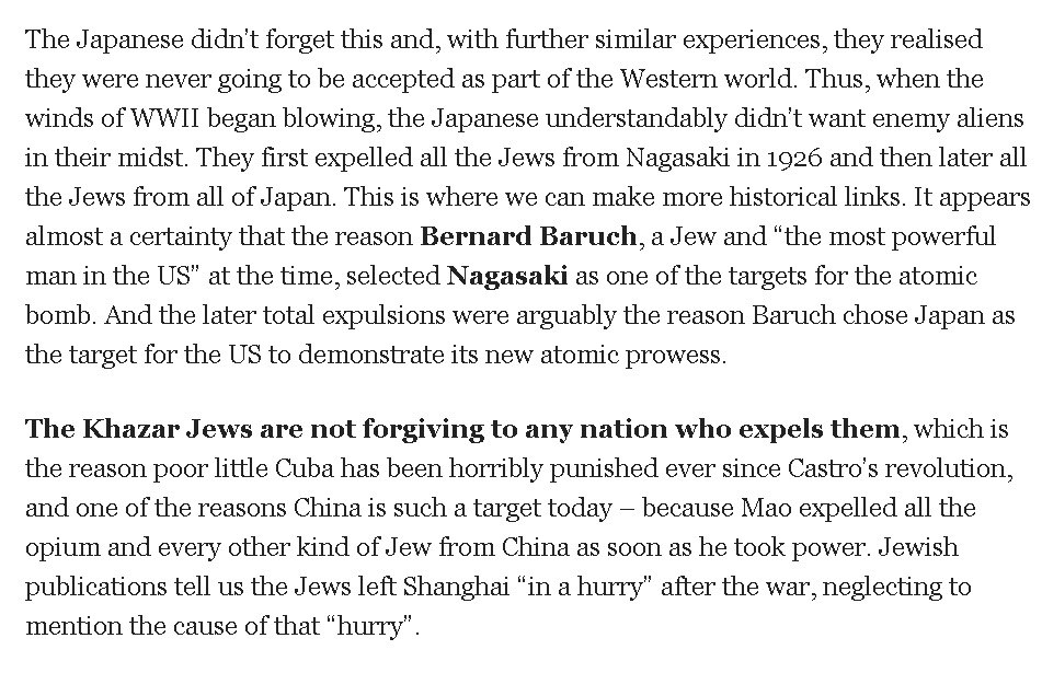 And what was the point of the big race for the US to develop the nuclear bomb that we have come to know as the Manhattan Project? Why to obliterate the two most Christian areas in Japan of course, Nagasaki & Hiroshima, for the crime of expelling ✡️s from their country.