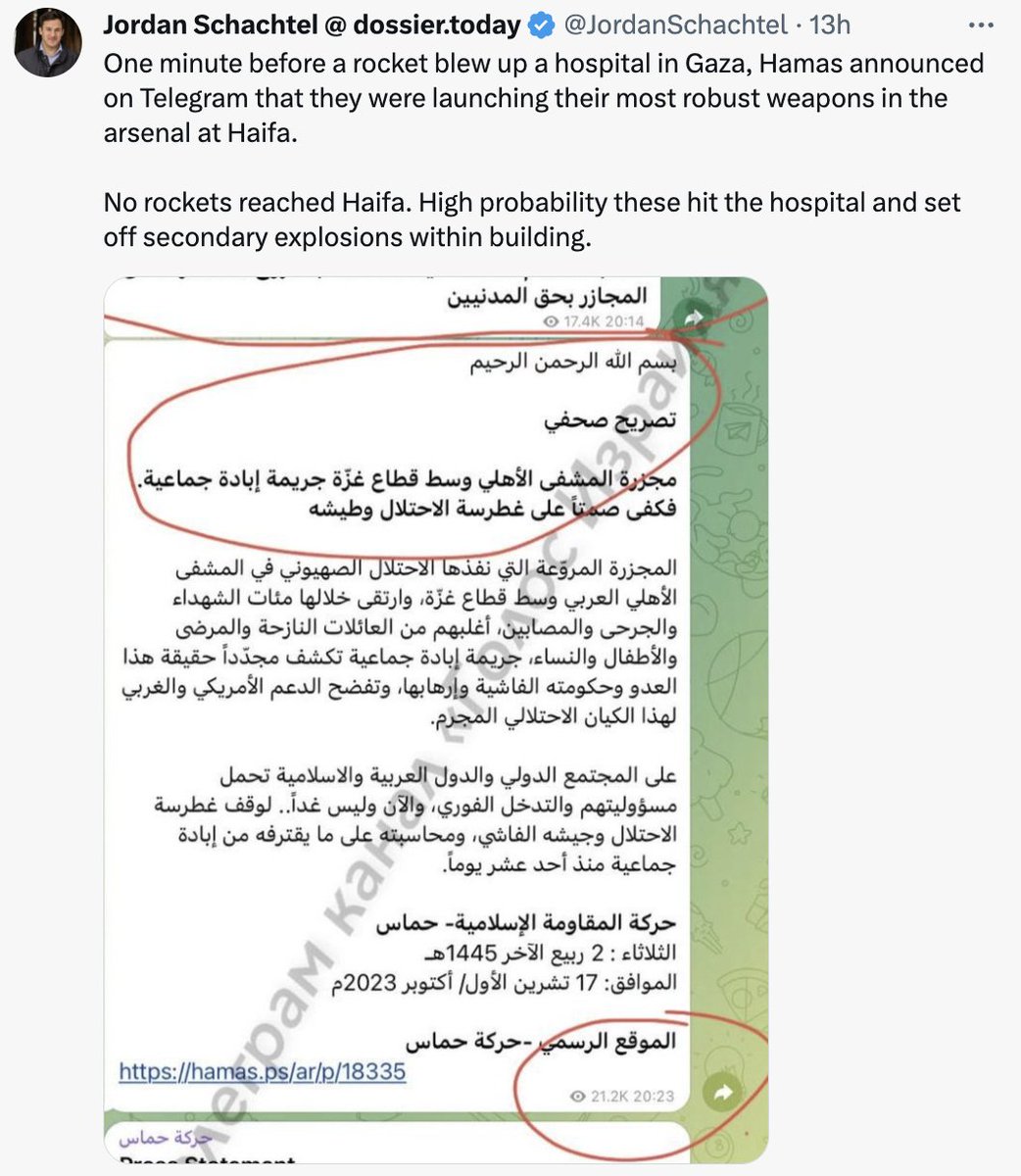 NEW EVIDENCE: Voice Recording Of Hamas Militants Realising The Hospital Explosion Was From Islamic Jihad In this 🧵 we'll take a look at evidence proving the the explosion was likely not from IDF, including evidence of the bomb that was large enough to cause such an explosion. https://t.co/1mH1KMM27N