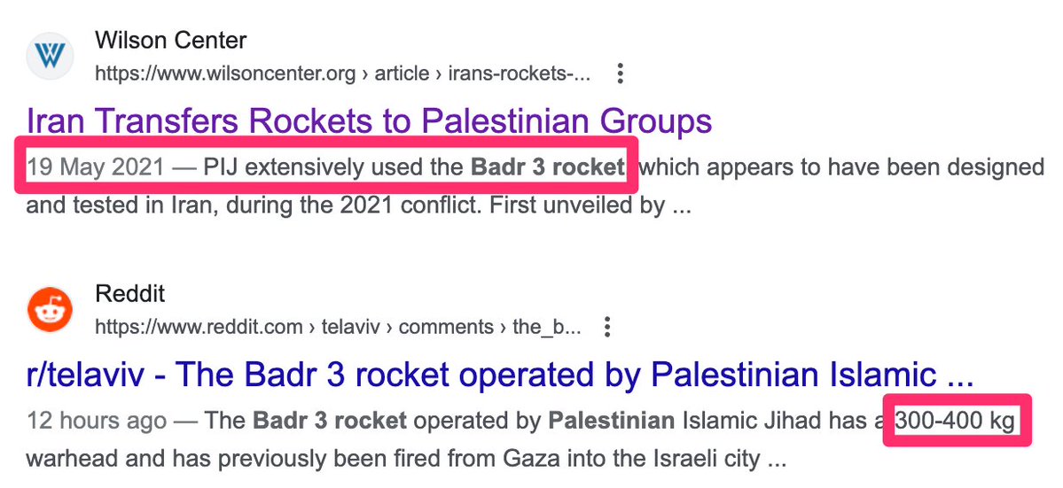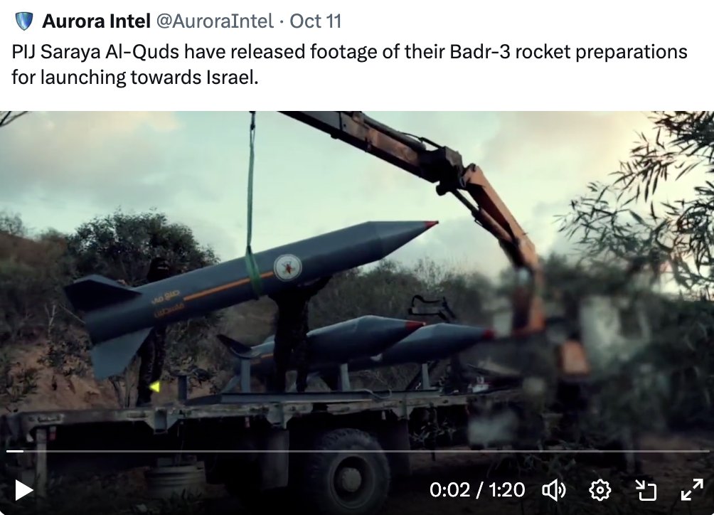 4) The type of rocket large enough to cause sufficient damage is the Badr-3, with a 300-400kg warhead, and was well known to be given to Palestinians from Iran... https://t.co/3qPSTSCQPH