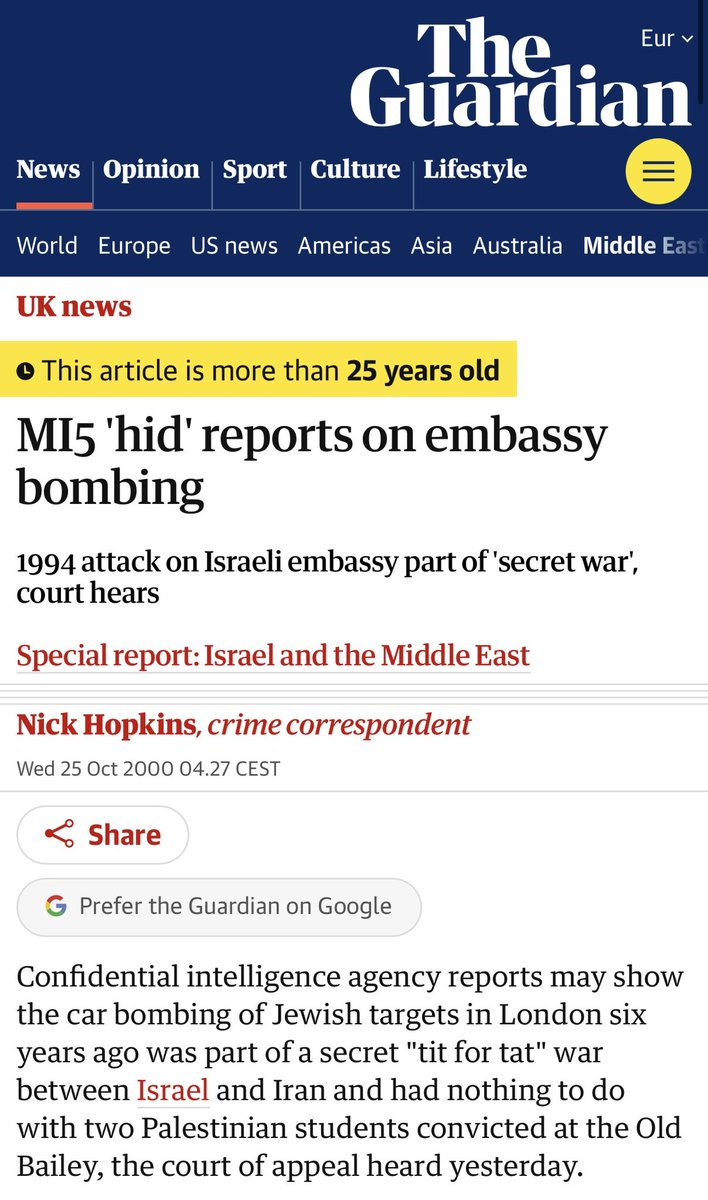 Please keep in mind the Mossad bombed their own embassy in London in 1994. The MI5 confirmed this happened, then hid the report: https://t.co/0gET4ehuso