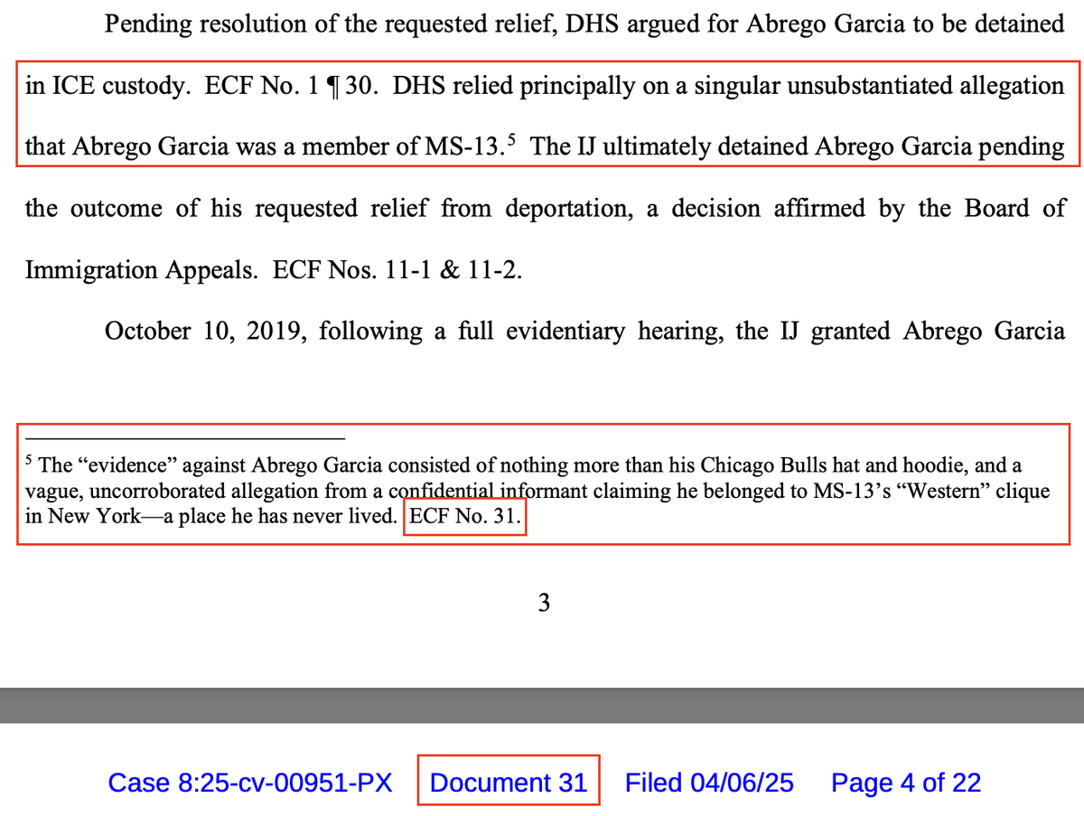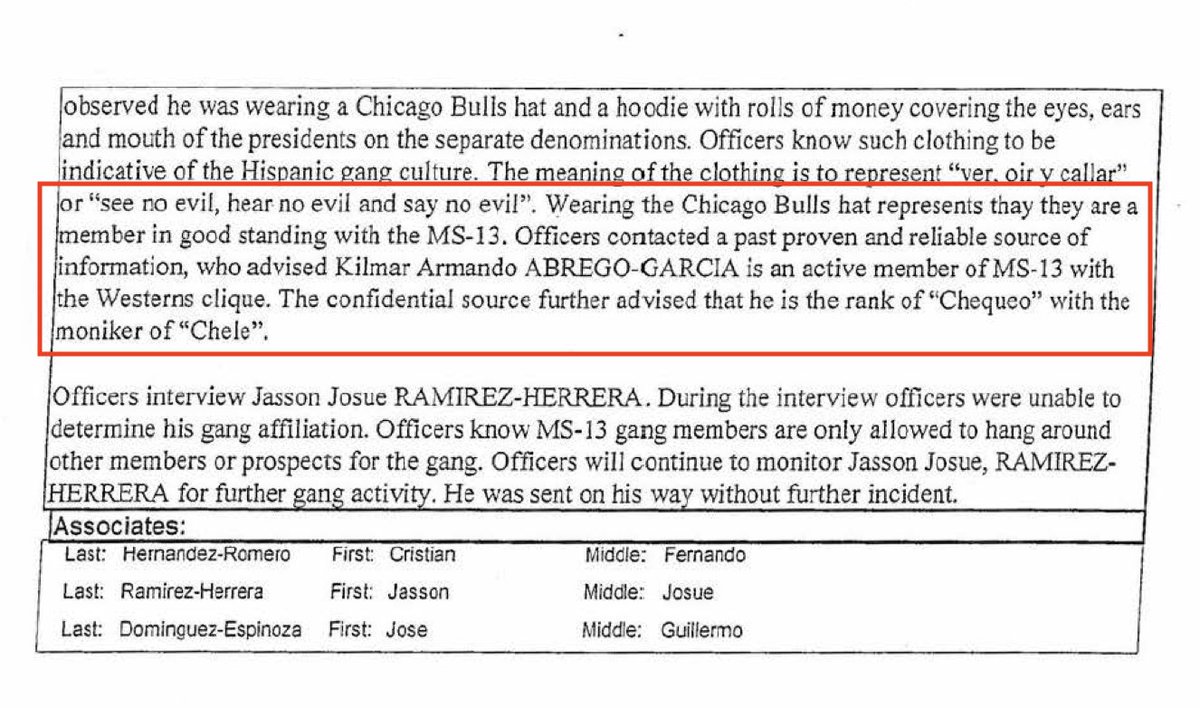 Abrego-Garcia's lawyers insisted that there was no evidence that he was MS-13, that the cops were just making it all up, that he's just a Maryland father. Turns out that he was hanging out with multiple confirmed MS-13 members when he was arrested, that he was wearing apparel associated with MS-13, and that a confidential source independently identified Abrego-Garcia's membership in MS-13 along with his rank and moniker in the organization. People need to stop taking everything these lawyers say as gospel!