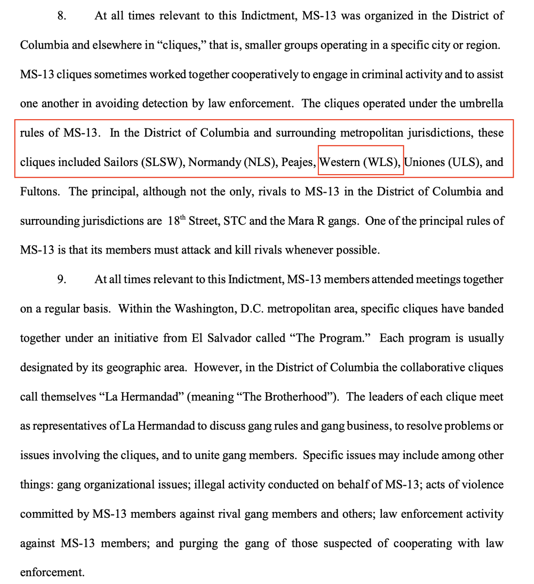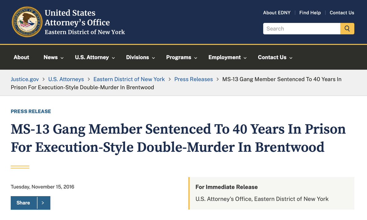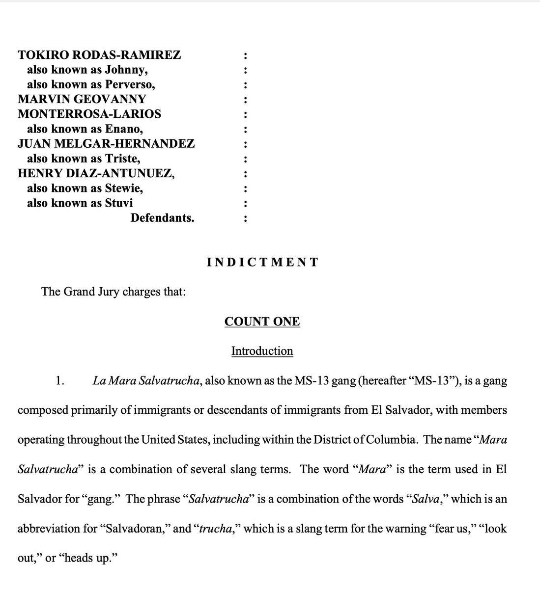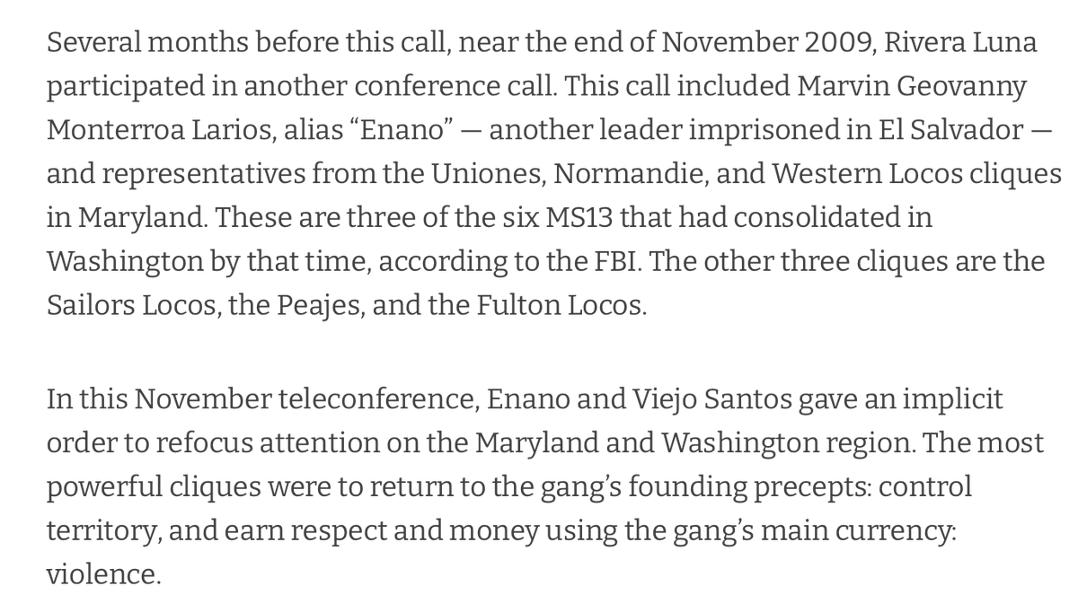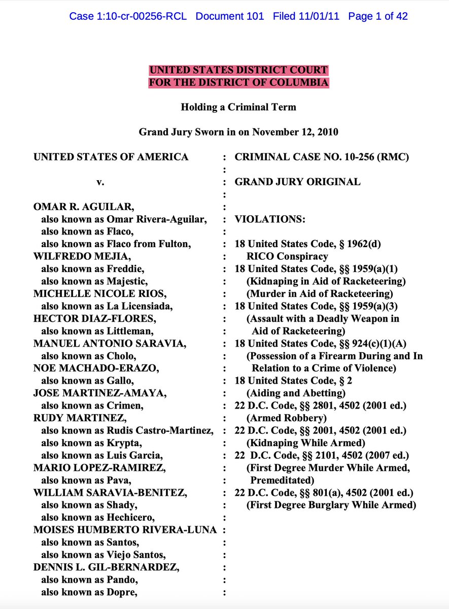 In the course of my research, I tracked down a major RICO indictment of MS-13 members from the United States District Court in the District of Columbia. DOJ attorneys began with a history of MS-13's infiltration into the United States, and in particular the DC metro. https://t.co/qg7m3w59ax