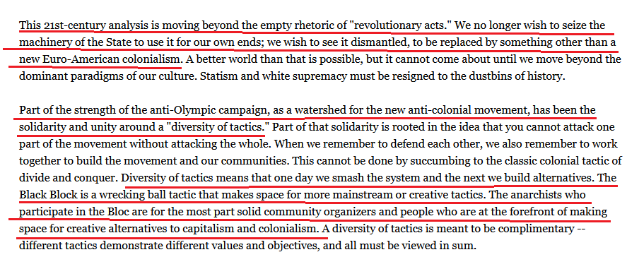17/ and it is backed by a set of academic theories about how violence, property damage, blockades, and so fourth can be used to put pressure on the authorities and create political leverage that can be used to extract concessions from politicians, businesses, and other groups.
