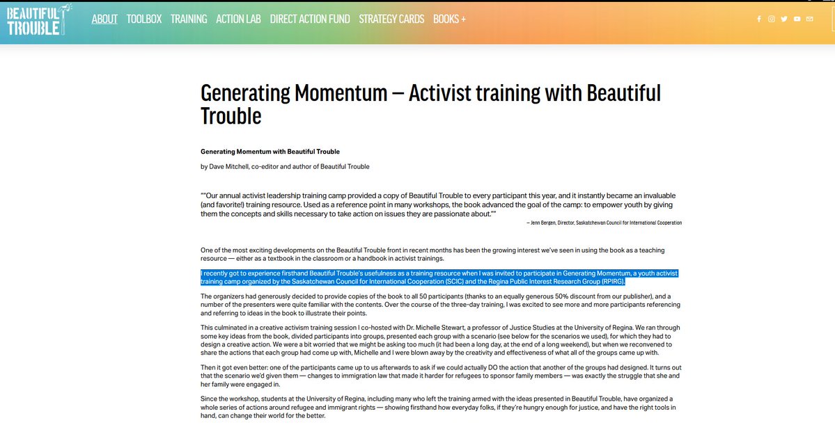 @DataRepublican 21/ I know this because the book that all of these tactics comes from is called "Beautiful Trouble" and one of the Co-authors lived in my city. He used to run activism camps and made appearances at the University I attended **while I was there** I know these people first hand. https://t.co/7twhUKTx1i