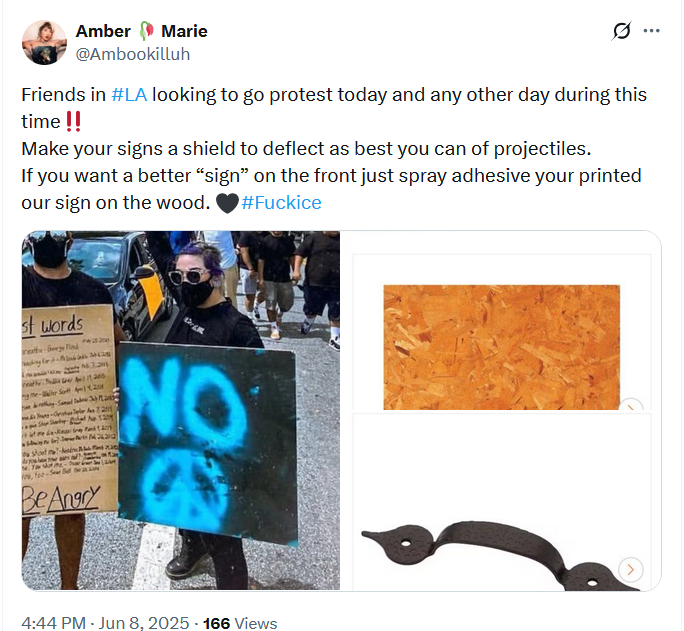 2/ First, notice the protestors have shields (pic 1) These types of shields were used by the 2024 pro-Hamas rioters (pic 2), and 2020 BLM rioters (pic 3) Each shield takes 3 hours to make, and activists spend all day making them (pic 4) That's not spontaneous, it takes planning