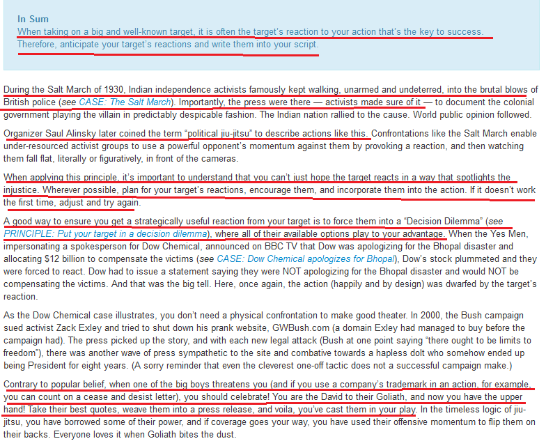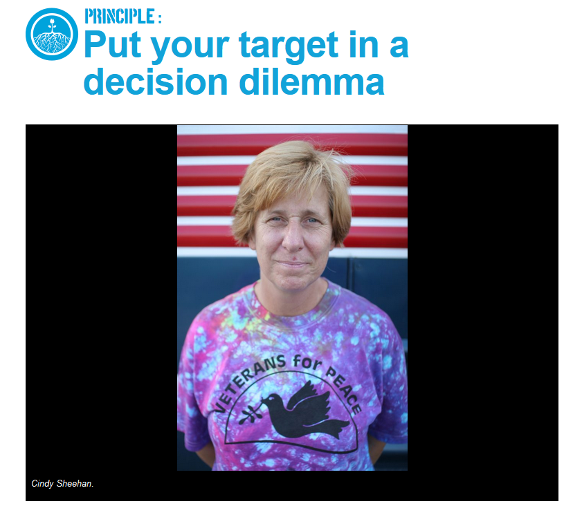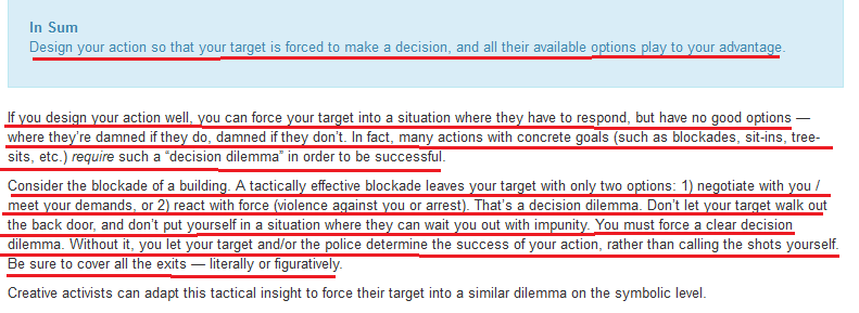 6/ To see how this works we need to understand the TACTICS they're using. The first strategy is to put their target in a "decision dilemma" by implementing a method of protest that leaves the person with no good options. No matter how the target reacts they look bad. https://beautifultrouble.org/toolbox/tool/put-your-target-in-a-decision-dilemma
