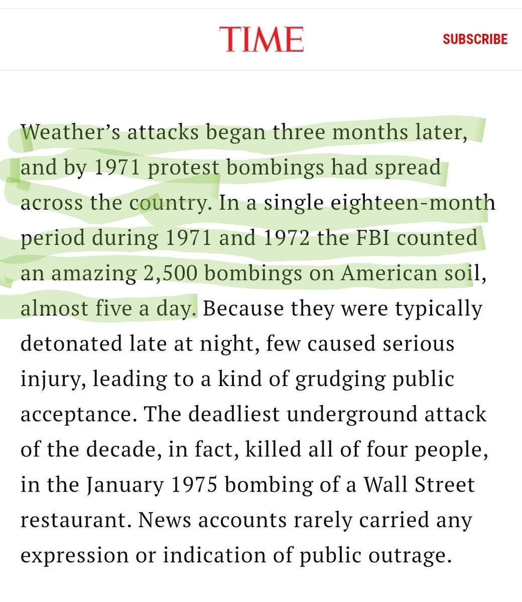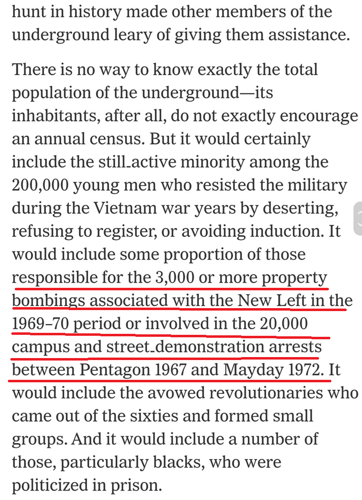 The left gets away with violence because it has the capacity to memory hole and cover up all it's violent behavior. For example, from 1971-1972 leftists carried out 5 bombings per day, every day. By the end they carried out more than 3000 bombings. And nobody remembers... https://t.co/lkZnCYzzIj