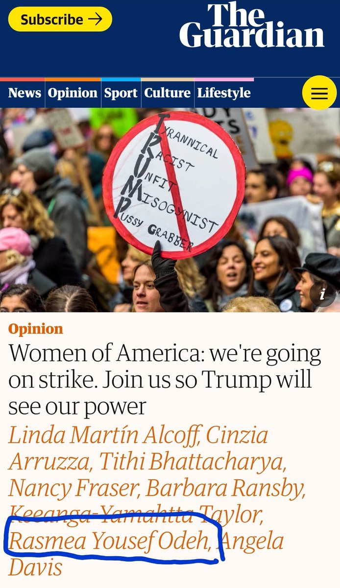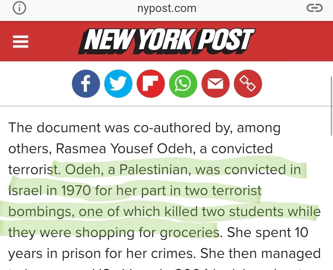Example 2: Rasmea Odeh was a convicted terrorist who admitted bombing an Israeli supermarket back in 1969, killing 2 civilians (see pic 2). She helped found "the women's march," and co-wrote a manifesto that got published in national outlets to great applause. (pic 3) so.... https://t.co/02KNGsMvYC