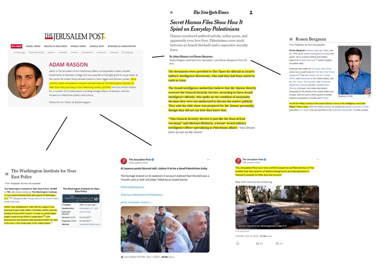 the New York Times is now just laundering straight Israeli intelligence propaganda under the guise of "journalism". Yesterday they published a piece titled "The secret Hamas files". Ronen Bergman, who served in Israeli military intelligence before being hired by the New York Times and has been acting as their main "reporter" on the ongoing Gaza genocide, wrote it based on documents given to him by Israeli intelligence, literally citing whatever anonymous Israeli intelligence agents tell him, and doing straight Mossad propaganda without even a hint of shame. The other author of the piece is Adam Rasgon, who worked for the Jerusalem Post, a deranged Zionist propaganda rag that claimed killed Palestinian babies were fake dolls and "verified" the 40 beheaded babies hoax. He also worked at the Washington Institute for Near East Policy, a Zionist Israel lobby propaganda front founded by AIPAC. In October he co-wrote a deranged screed in the New Yorker putting a kill target on every journalist in Gaza by smearing them all as "Hamas propagandists" (see this thread: https://x.com/sanasaeed/stat/SanaSaeed/status/1719481693826875483). Just look at the byline: "Ronen Bergman, reporting from Tel Aviv, and Adam Rasgon, reporting from Jerusalem." Both served in the Israeli military, with again Bergman serving in military intelligence. Both are deeply committed Zionists, having spent their entire lives devoted to explicitly doing propaganda for Israel. And both are being presented by the New York Times as just neutral objective reporters literally laundering an Israeli propaganda operation as they themselves admit openly in the piece. Why wouldn't they? They know nothing will happen to them. This is par for the course. This is why they were hired. It's their job to launder explicit Israeli propaganda operations. This is considered "journalism" by the New York Times. And everyone in the media class thinks this is perfectly normal, and just gave Bergman a Pulitzer.