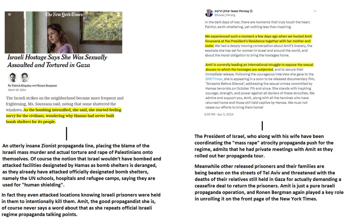 Ronen Bergman was also handpicked to do the Amit Soussana operation. Amit was groomed by the Israeli regime as their final trump card for the "mass rape" hoax, though her uncorroborated allegation completely undermines it. But Bergman did his job: https://t.co/W2ThqTeVor https://t.co/tziKylml8Z
