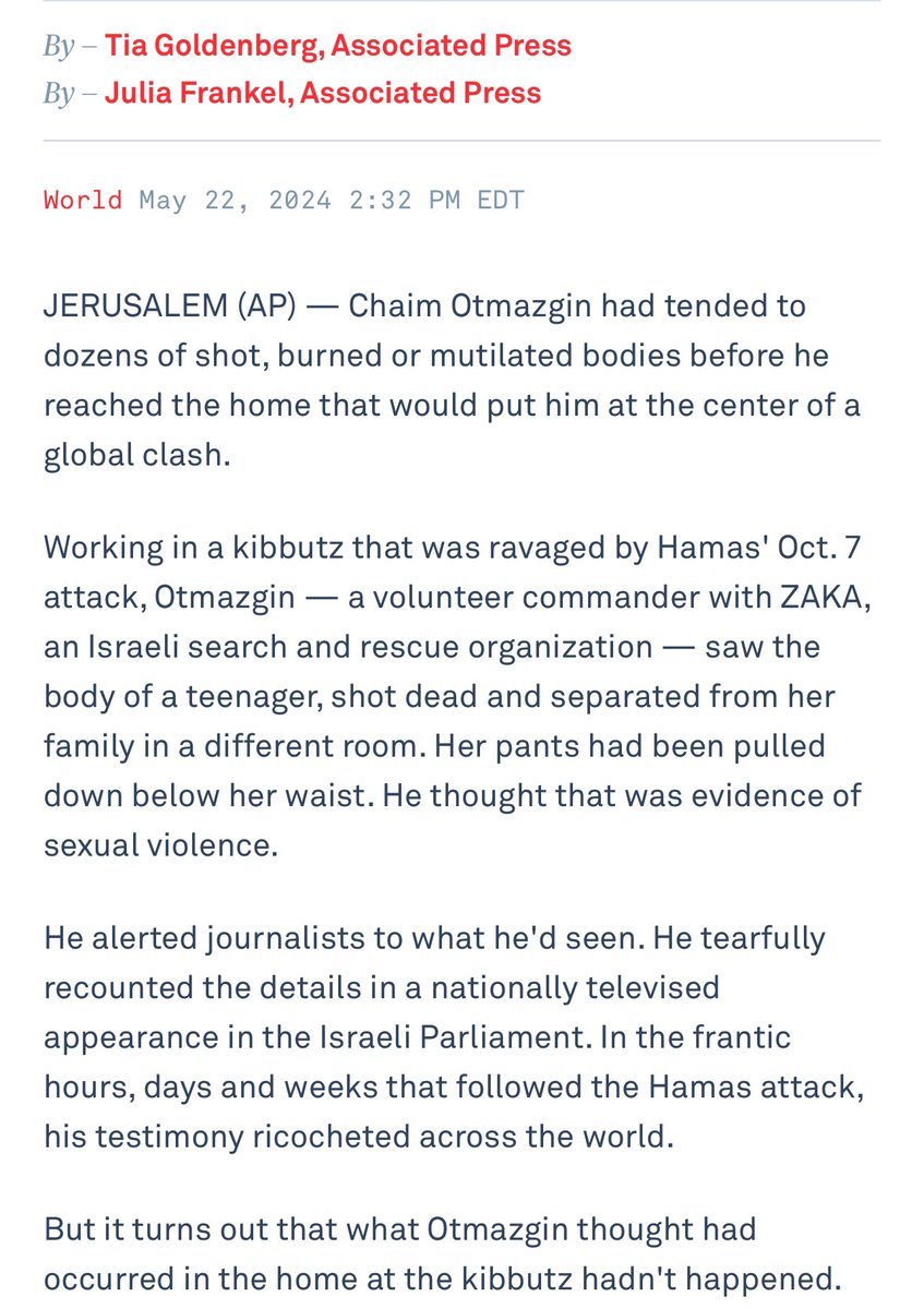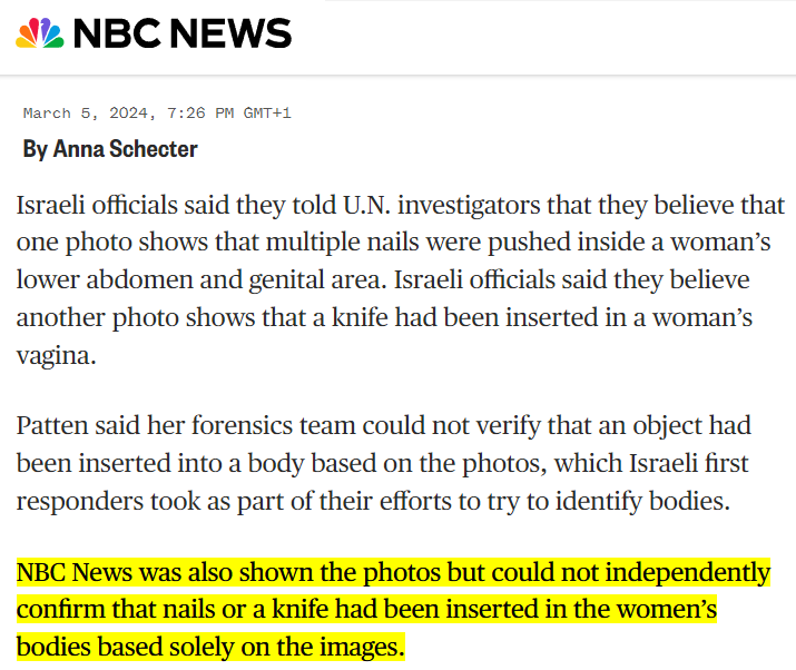 again, all of this was already exposed by outlets like Mondoweiss, Electronic Intifada, Grayzone and people like myself, as we are smeared by Zionist propagandists who fabricated and spread the "mass rape" hoax. Now prestige media is starting to admit it https://t.co/9VmQPfyc3k
