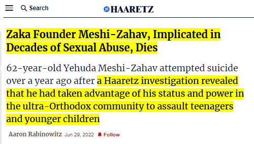 oh my god, it only gets worse: Not only is Chaim Otmazgin a pathological liar who played a key role in fabricating the "mass rape" hoax, but he also defended the founder of Zaka who was actually a pedophile mass rapist. This is Sandberg's star "witness"