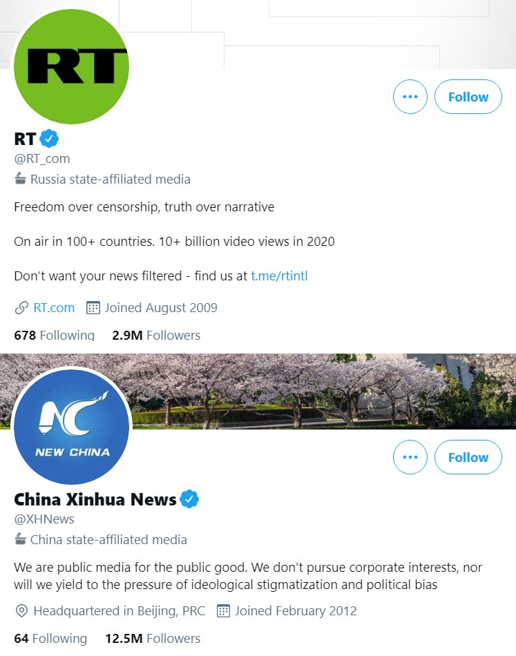 they're also filtered in searches, so you have many restrictions in the West on media which are openly state affiliated like Russia Today (actually banned in the EU now) but psy op networks aimed at Official Enemies are boosted including on Musk's twitter: https://t.co/6jGpL4f6gI
