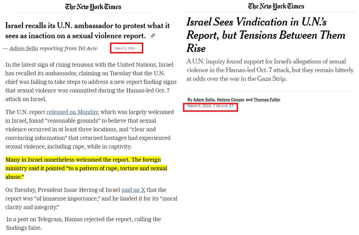 the UN's Human Rights Office, unlike Pramila Patten's office, actually does have an investigatory mandate and abilities, and this is their conclusion from their investigation: The NYT, AP, Reuters, Guardian all lied. And even Patten had concluded the same: https://t.co/WAeH1vftD8