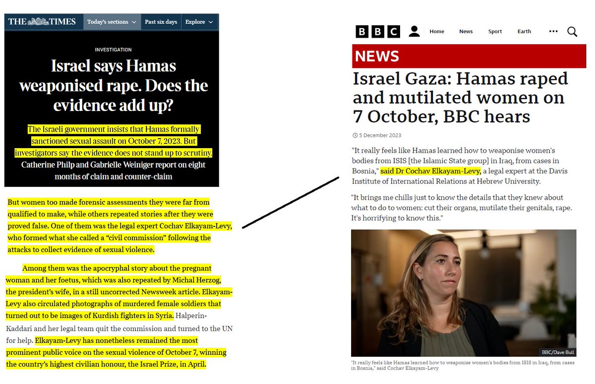 another fact destroying the "mass rape" hoax as fabricated and laundered by the BBC in particular, in an article that remains the first result when you search for "Hamas rape". The Times now reports the person the BBC cites as a credible source, Cochav Elkayam-Levy, is a hoaxer: https://t.co/SaNvQ7DK1O