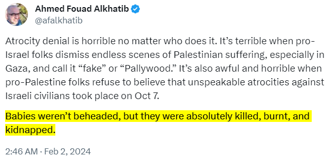 holy shit. In those Atlantic pieces he was hired to write by the gleeful torturer of Palestinians Jeffrey Goldberg, gusano boy Ahmed Alkhatib laundered the most deranged Zionist propaganda, including from another Israeli propaganda asset doing Arab-face: https://t.co/zq0oGAIA6s