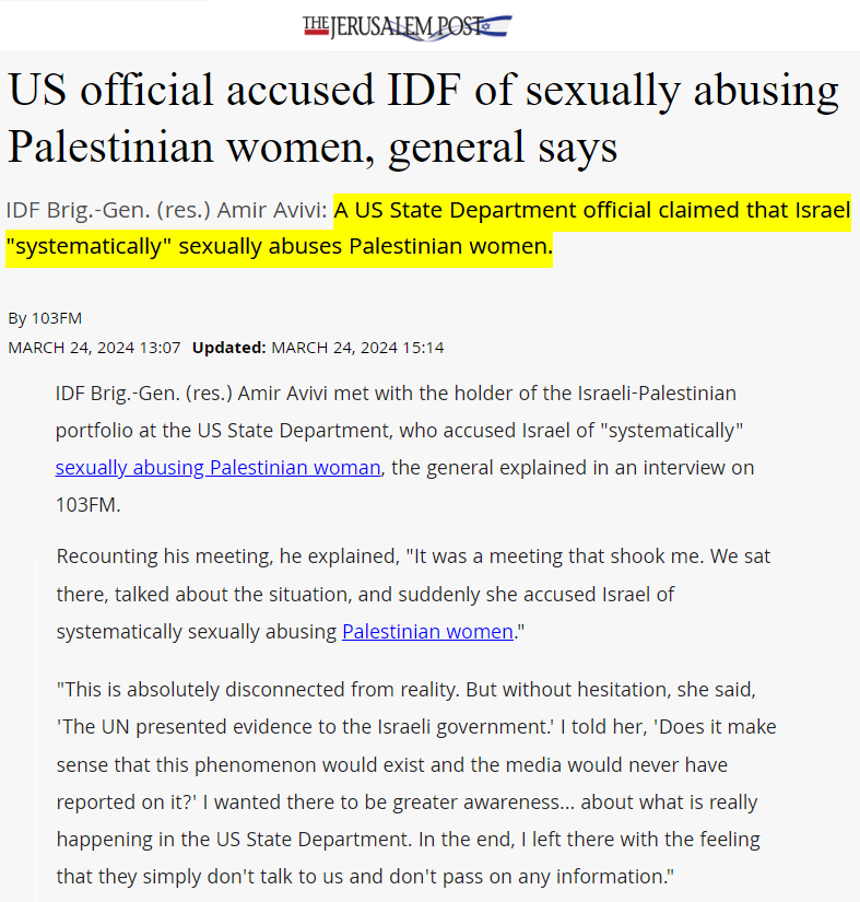 so to summarize: The entire prestige Western media class fabricated the "mass rape" hoax as genocidal atrocity propaganda on behalf of the Israeli regime to not only launder the ongoing Gaza genocide, but do cover for the actual systematic Israeli mass sexual violence and rape
