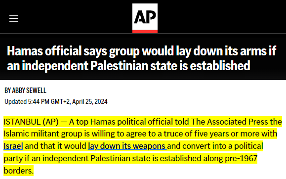 as all the statements and positions of Hamas have made clear, they are in fact very restrained and moderate, and only seek to secure the basic rights of Palestinians, in contrast to the Israeli occupation regime that wants to genocide all Palestinians https://t.co/Wi9CGvbgeO