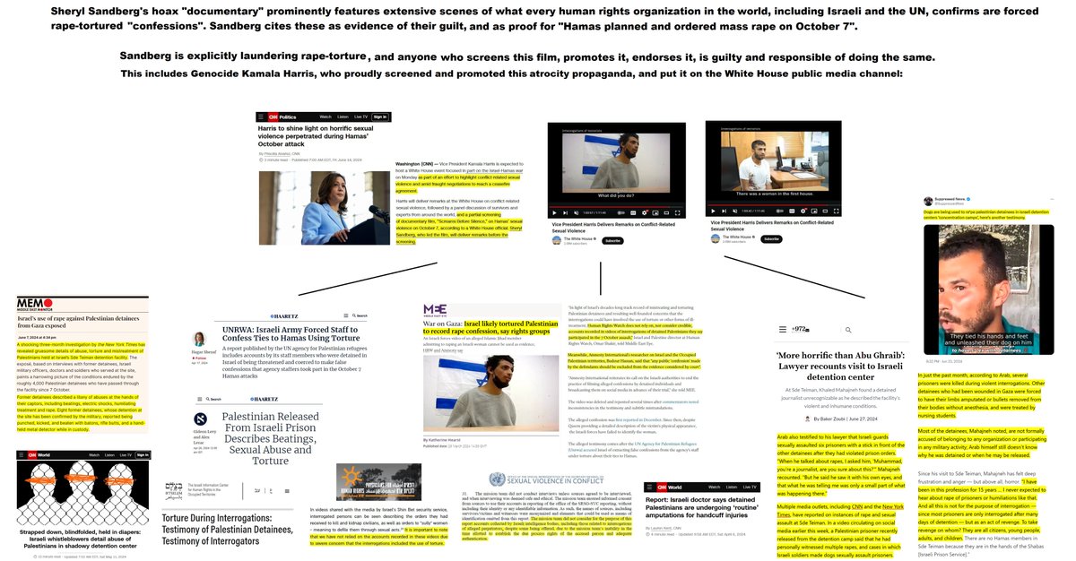 this is essential: The Sde Teiman rape-torture-death camp is where they made videos of the innocent Palestinians they claimed were Hamas who were raped to death after being rape-tortured into giving false confessions. Kamala Harris promoted those videos: https://t.co/7SYDFMGknt https://t.co/7fLBUHIniw
