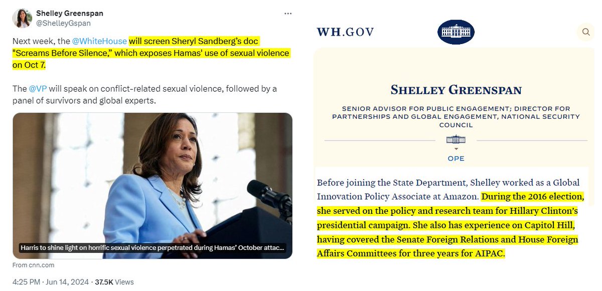 here are some of the scenes of proven pathological liar and grifter senior Zaka commander Chaim Otmazgin in Sheryl Sandberg's hoax "documentary". Remember, Kamala Harris screened this at the White House just three days ago. It's utterly insane