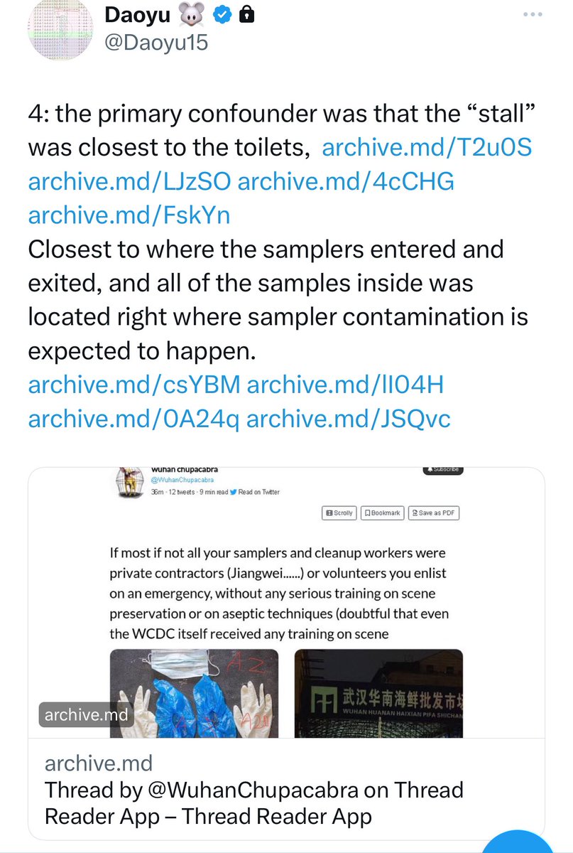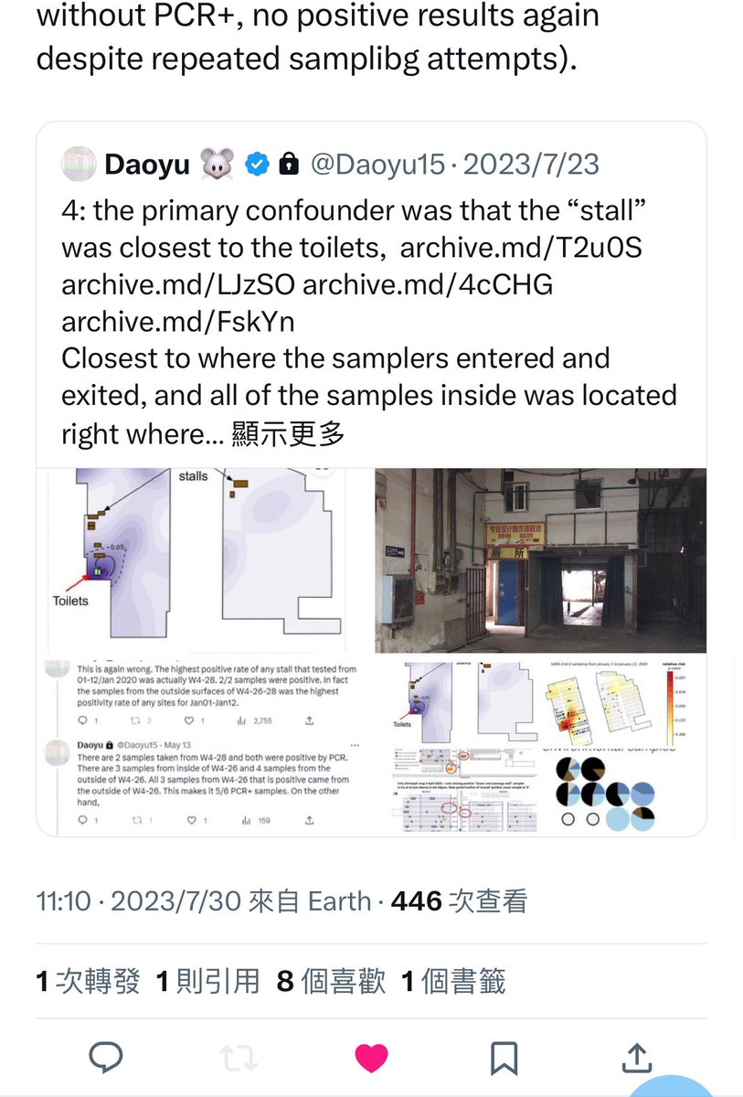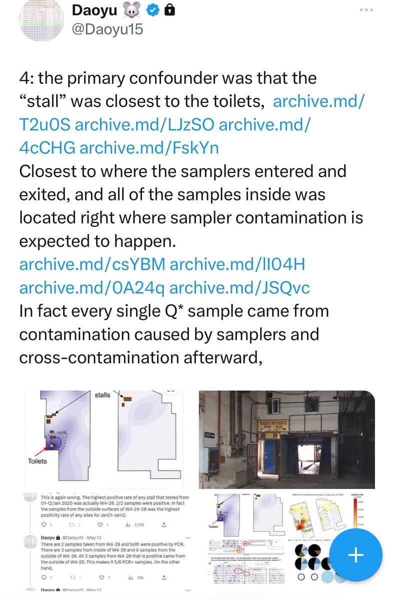 @Daoyu15 5/â¶ 4: the primary confounder was that the âstallâ was closest to the toilets, archive.md/T2u0S archive.md/LJzSO archive.md/4cCHG archive.md/FskYn Closest to where the samplers entered and exited, and all of the samples inside was located @Daoyu15 https://t.co/DbP1ELVZbG