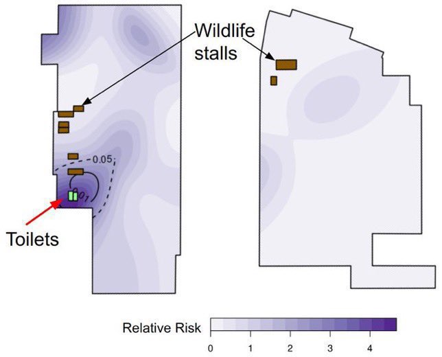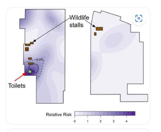 @Daoyu15 9-8/ @Daoyu15 in both Jan 01 and Jan 12, the stall with the most positive samples out of all samples is the stall closest to the toilets, which you also see a few âpositive stallsâ with neither wildlife DNA nor human cases inside nearby in Jan 01, which are the respective stalls