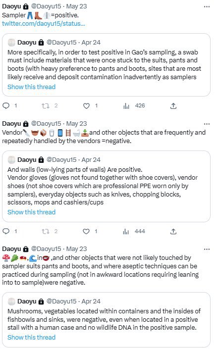 @Daoyu15 8-2/ @Daoyu15 well with time, when all PCR+ samples are in one location closest to the toilets from entirely unrelated cause (sampler boots and suits contamination where closer to the toilets mean more direct entry into the stall after entry into the market, where fresh virus https://t.co/3puTkNipMk