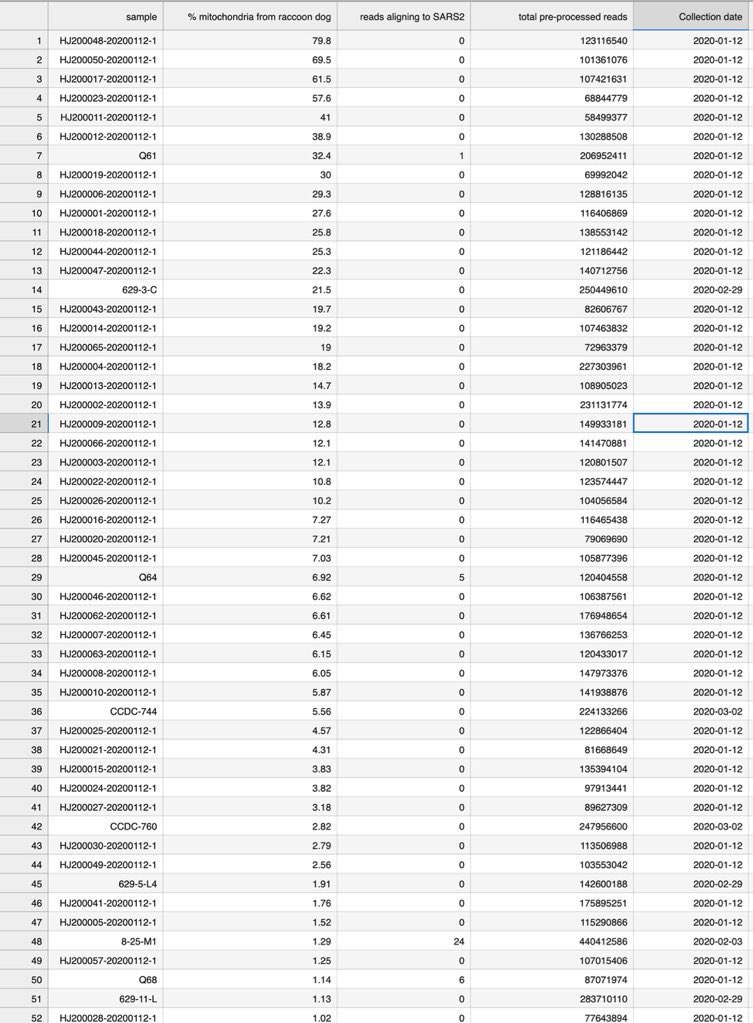 2/ 1. The anticorrelation is not an artifact. It is in every sample even within that âstallâ itself. 2: that âcartâ was PCR negative and Homo Sapiens are found in the sample. 3: nobody have ever found a naturally infected raccoon dog anywhere in the world. @Daoyu15 https://t.co/SaWf4ZP19J
