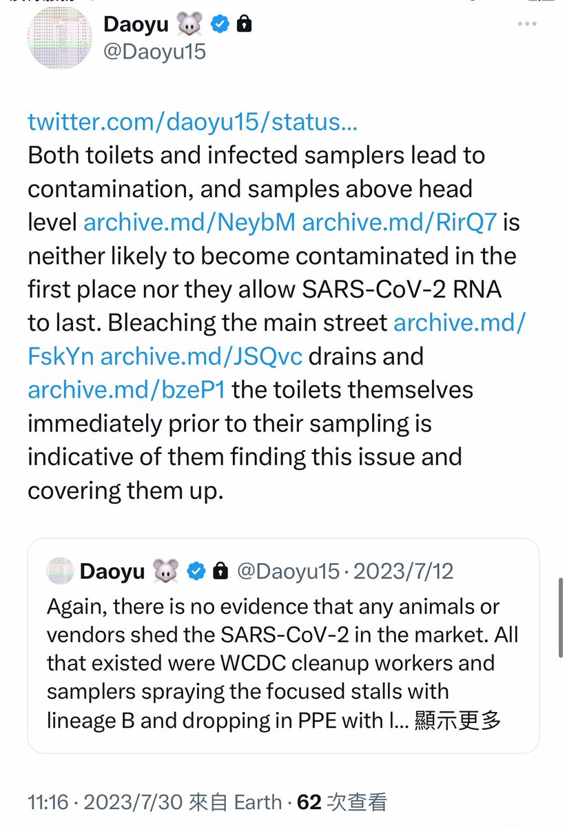 @Daoyu15 16/åŒçšâ· street archive.md/FskYn archive.md/JSQvc drains and archive.md/bzeP1 the toilets themselves immediately prior to their sampling is indicative of them finding this issue and covering them up. @Daoyu15
