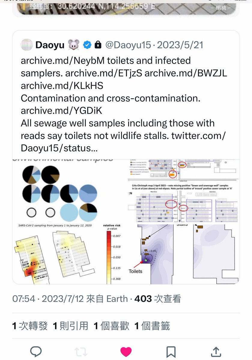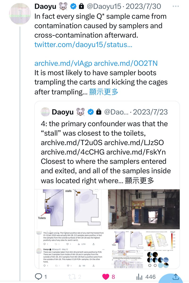 @Daoyu15 10åŒ1-5/ @Daoyu15 stall Aâ and the majority of the positive samples in the market is below step heightâthey are contaminated by the toilets and archive.md/4cCHG archive.md/FskYn is the reason why the stall with the most positive samples out of all samples is the