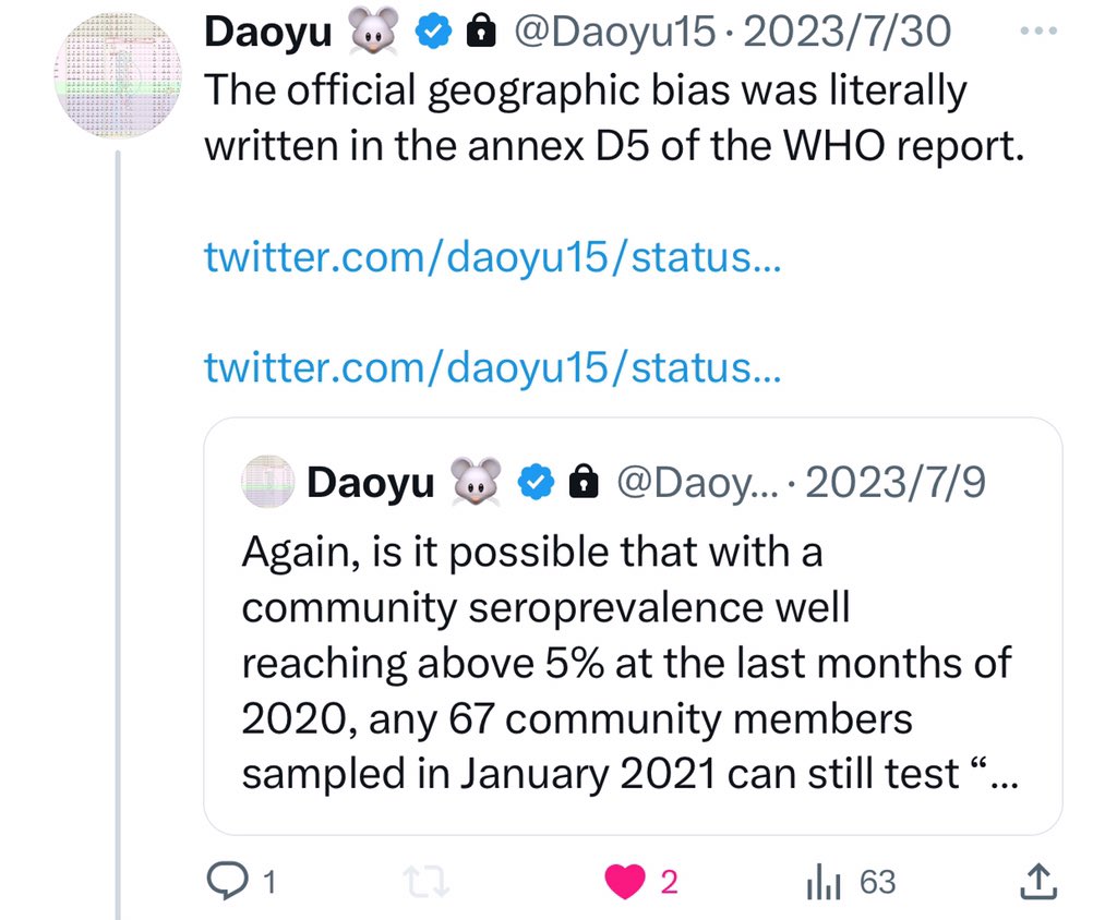@Daoyu15 17/The official geographic bias was literally written in the annex D5 of the WHO report. @Daoyu15 https://t.co/w4JviOACWr