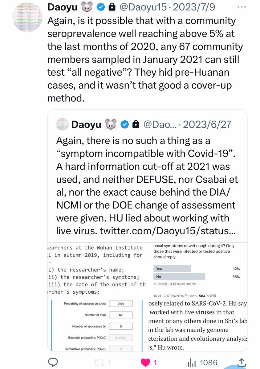 @Daoyu15 17/åŒçšXæâ· Is it possible that with a community seroprevalence well reaching above 5% at the last months of 2020, any 67 community members sampled in January 2021 can still test âall negativeâ? They hid pre-Huanan cases, and it wasnât that good a cover-up method. @Daoyu15 https://t.co/uR2fcBDZmT